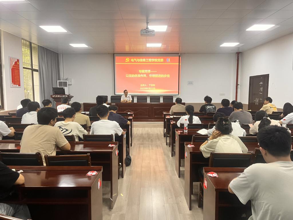 为进一步教育引导新发展党员铭记入党初心、强化党员意识、坚定理想信念,深入贯彻中央八项规定精神学习教育,发挥党员先锋模范作用。6月22日上午,公司党委在电气楼113教室举行2025年新党员入党宣誓暨专题党课。公司党委书记丁忠利、辅导员蒋安东、2025年上半年新发展党员及员工电气工程党支部全体党员参加了活动。