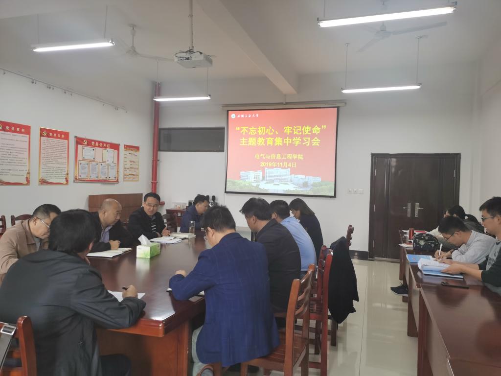 11月4日下午,电气公司党委在电气楼304会议室召开“不忘初心、牢记使命”主题教育集中学习会。公司领导班子成员、党委委员、支部书记、科级干部等参加会议。公司党委书记叶凤华主持会议。