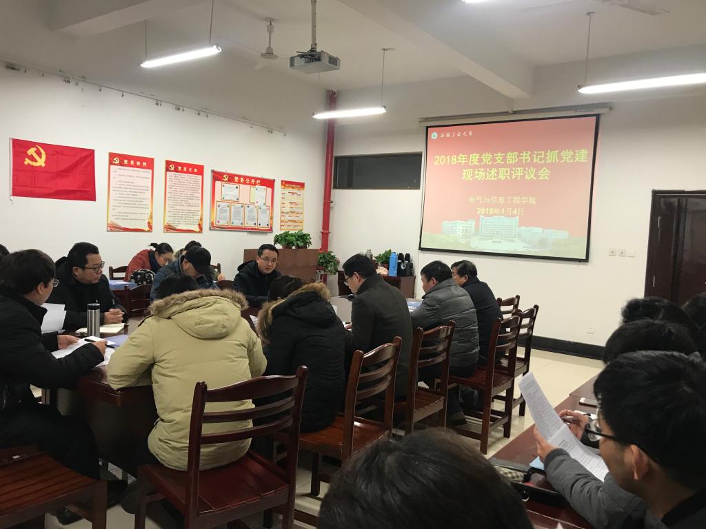 为深入学习贯彻习近平新时代中国特色社会主义思想和党的十九大精神,牢固树立党的一切工作到支部的鲜明导向,进一步增强公司党支部书记抓党建的责任意识,根据《英国正版365官方网站2018年度基层党组织书记抓党建述职评议考核工作实施方案》(安工大党〔2018〕120号)和《电气公司党委关于做好2018年度党支部书记抓党建述职评议考核的工作通知》文件精神,1月4日上午,电气公司党委在电气楼304会议室召开2018年度党支部书记抓党建现场述职评议会,公司党政领导、党委委员、系室(中心)主任、工会主席、科级干部、师生代表等参加会议。会议由公司党委书记叶凤华主持。