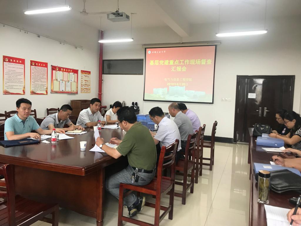 6月20日上午,公司基层党建重点工作调研督查组到电气与信息工程公司就公司基层党建重点工作开展情况进行调研督查。调研督查组由集团办公室主任窦贤琨、纪委办副主任、监察处副处长毛国红、组织部副部长路壮志、机械工程公司党委书记徐柳根组成。电气公司党政班子成员和全体党支部书记参加了会议。