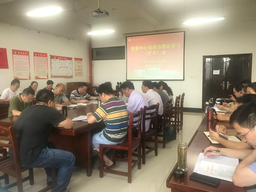 6月25日下午,电气公司召开2018年第五次党委中心组理论学习(扩大)会议,公司党政领导、党委委员、党支部书记、各系室中心主任、科级干部、工会主席和全体辅导员参加会议,会议由公司党委书记叶凤华主持。