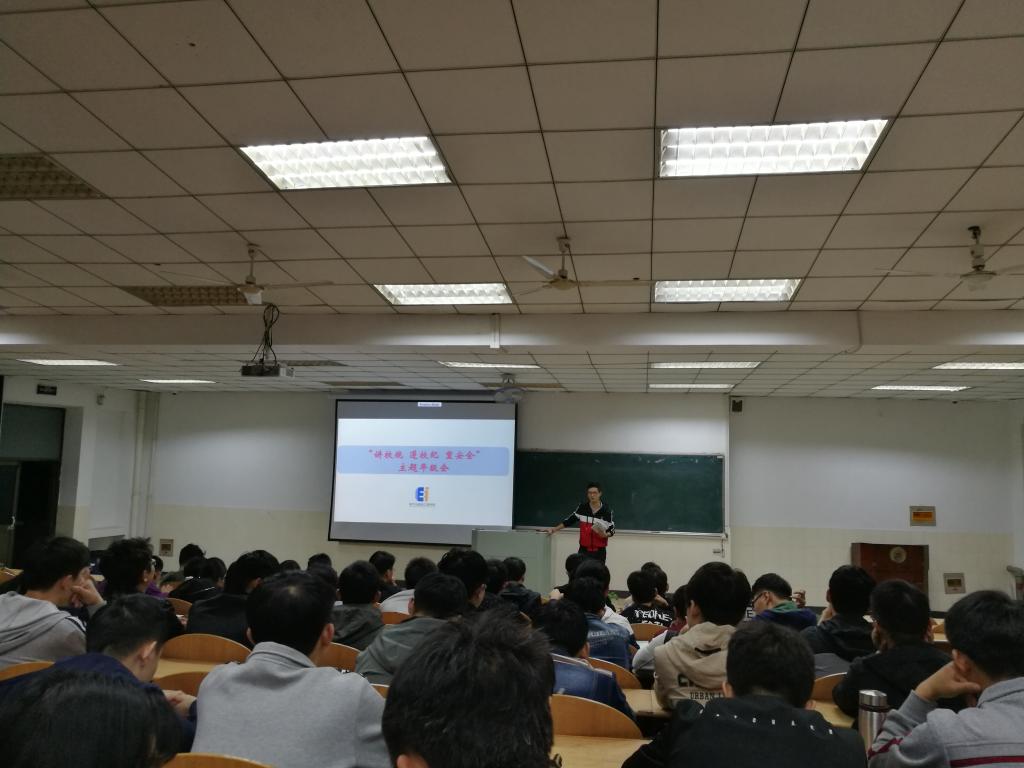 10月18日晚,电气公司2015级在秀山校区阶教201召开“讲校规、遵校纪、重安全”主题教育年级会,2015级毕业班同学参加了会议。