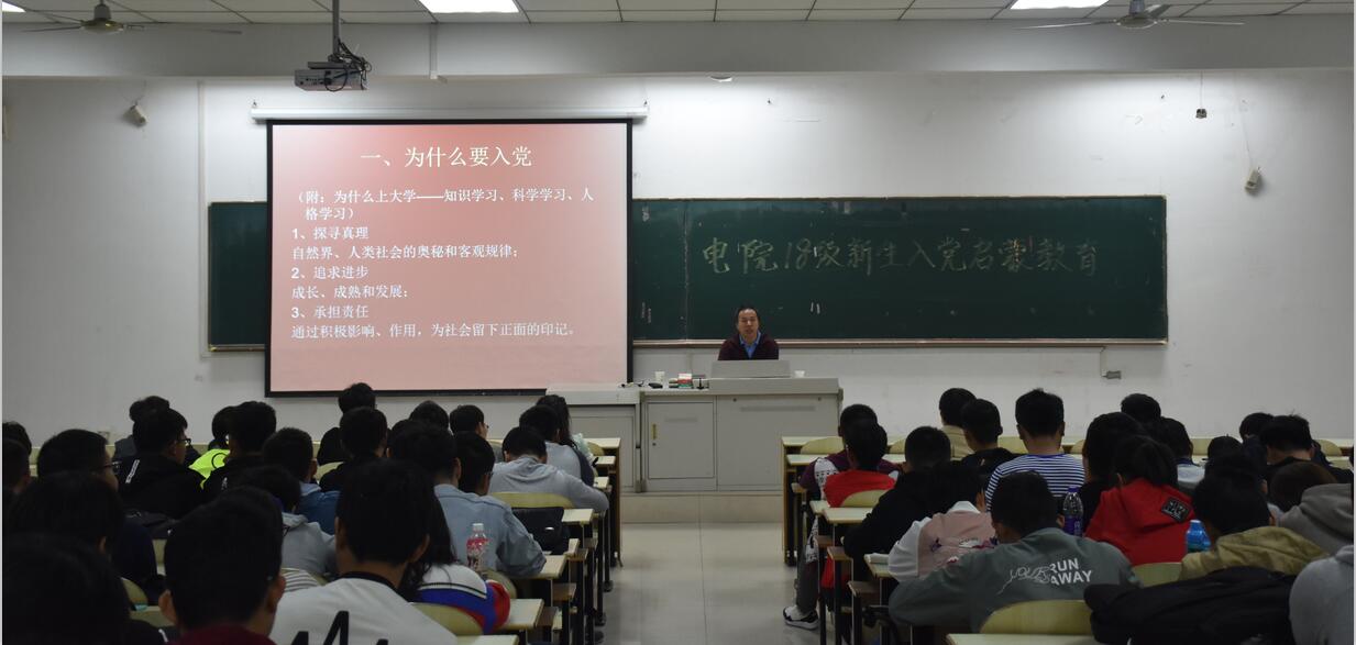 10月15日下午,电气公司于佳山校区教三南103开展了主题为“知党,入党,跟着党”的2018级新生入党启蒙教育讲座。本次讲座特别邀请了关工委宋洪生老师主讲,新生辅导员及全体大一新生参加。