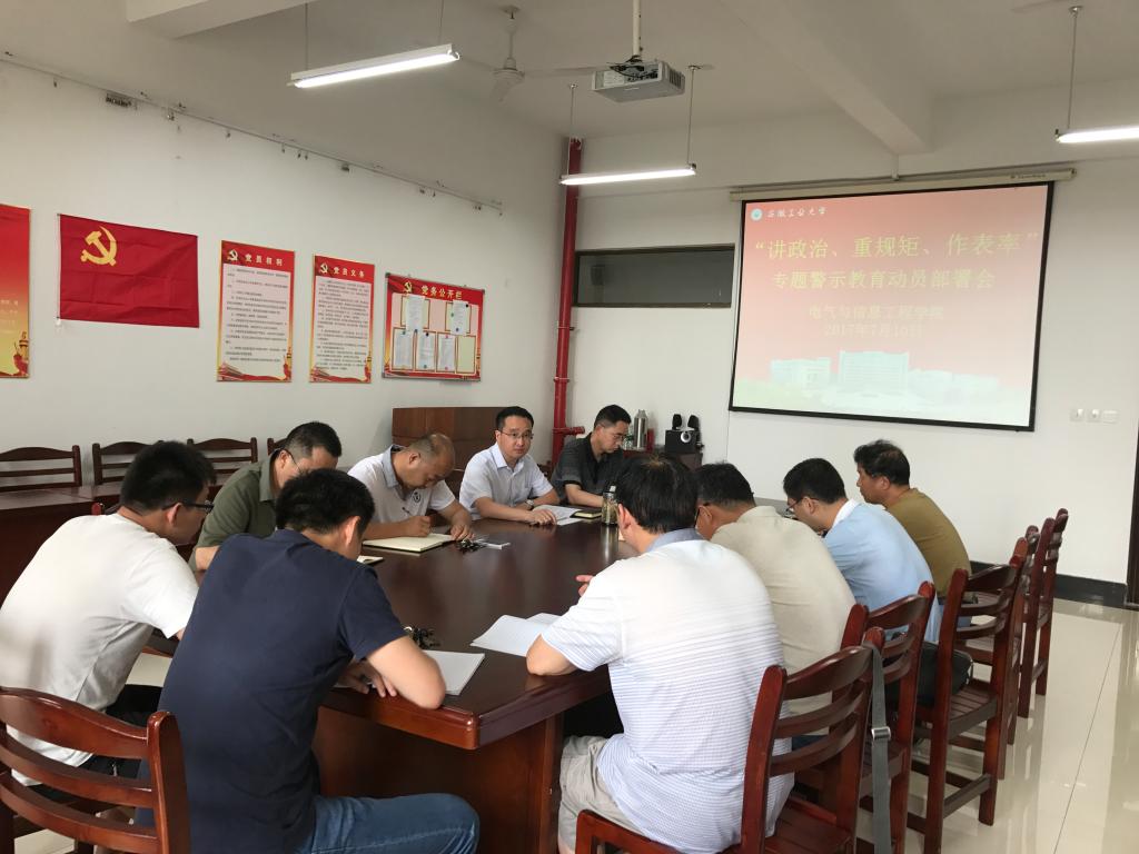 会上还对公司即将出台的《关于在全公司党员干部中开展“讲政治、重规矩、作表率”专题警示教育的方案》和《电气公司“讲政治、重规矩、作表率”专题警示教育组织施工图》进行了认真讨论。(撰稿:潘秋红;审核:叶凤华)