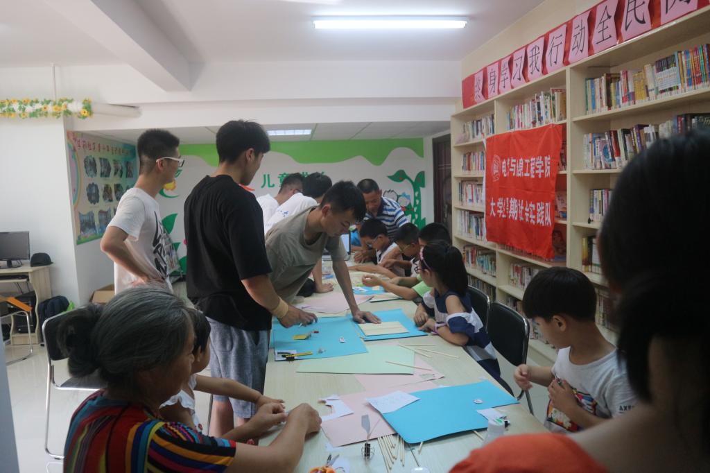 “小朋友们,如果大家想铭记自己成长道路上一些有趣有意义的事情,会怎么做呀?”“我们会写日记,会拍照片......”实践队队长陈子健在与孩子们的互动中告诉大家,可以通过自己的双手,给家里添置一些新鲜的小东西,这些东西能记录成长的足迹。孩子们的好奇心和积极性立马就被激发出来了,争先恐后地要学习制作手工工艺品。