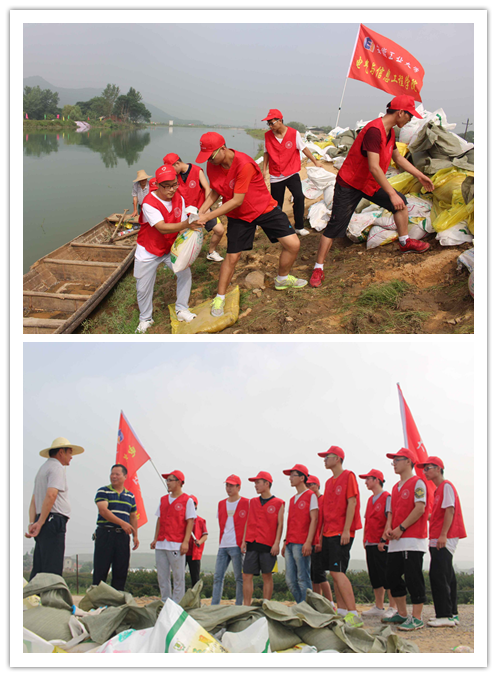 7月12日上午,电气公司正在马鞍山市佳山乡学苑社区参加暑期社会实践的11名党员、入党积极分子志愿者在社区党支部的组织下,深入雨山区采石河超陂圩抗灾第一线,参与河堤防汛救灾。