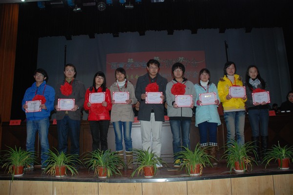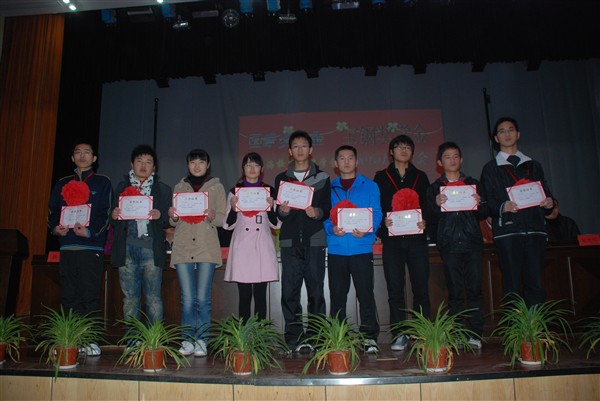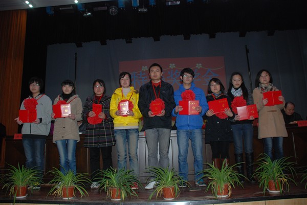 在颁奖仪式上,黄勇主任、王俊副部长、季爱华副部长、窦贤琨副书记等与会领导向获奖同学们表示了祝贺,并为先进集体和先进个人颁发了证书,为院先进班主任、国家奖学金、宝钢奖学金、董事长奖学金、国家励志奖学金获得者佩戴了光荣花。电气信息公司员工会学习部部长孙鹏同学向全体同学发出了“齐心协力促学风,众志成城建电院”学习倡议书。大会最后进行了集体宣誓活动,“立志成才、荣我电院”的雄壮誓言把整个表彰会的气氛推向了高潮。