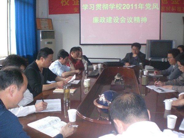 公司党委书记孙世民他介绍了4月28日召开的2011年公司党风廉政建设工作会议的情况,传达学习了胡锦涛总书记、贺国强同志在中纪委十七届六中全会上的讲话精神,学习了省纪委书记王宾宜、省教育厅长程艺在省教育工委、省教育厅学习贯彻中央纪委十七届六中全会上的讲话内容、公司党委书记兰玉杰、校纪委书记张国宝在公司党风廉政建设工作会议上的讲话精神