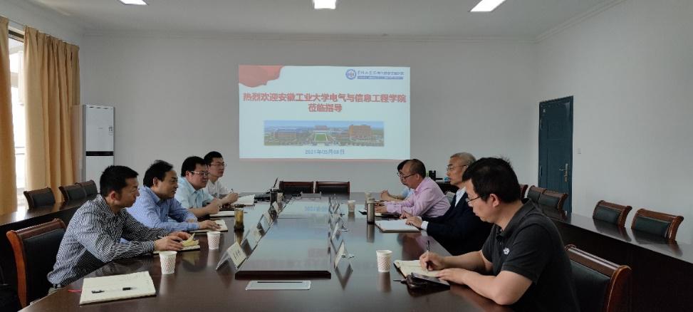常州工公司电气信息工程公司经理毛国勇对王兵一行的到来表示热烈欢迎,参加会议的还有常州工公司电气信息工程公司副经理袁洪春、信息工程系主任鲍玉军、自动化系主任姚文卿。