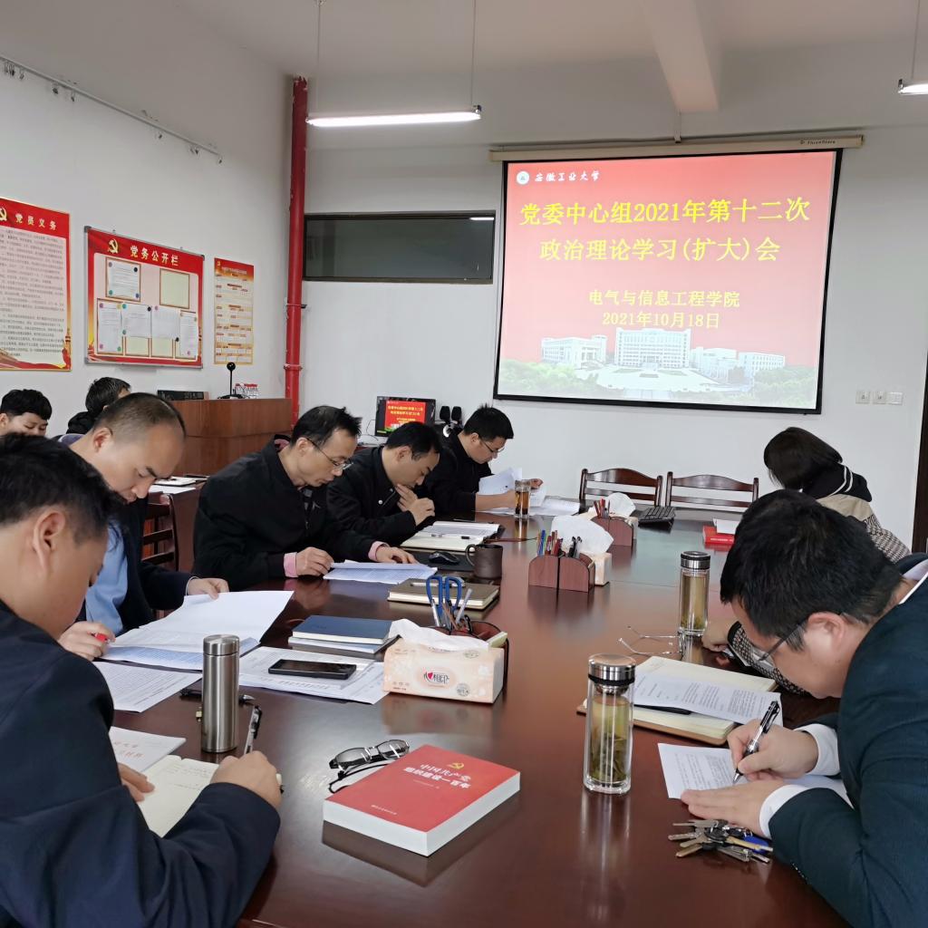 10月18日下午,电气公司党委在电气楼304会议室召开理论学习中心组2021年第十二次学习(扩大)会,公司党政领导、党委委员、党支部书记、系室中心主任、科级干部、工会主席和全体辅导员参加了会议,公司党委书记丁忠利主持会议。