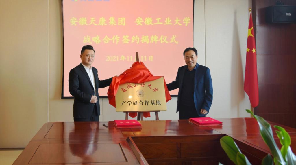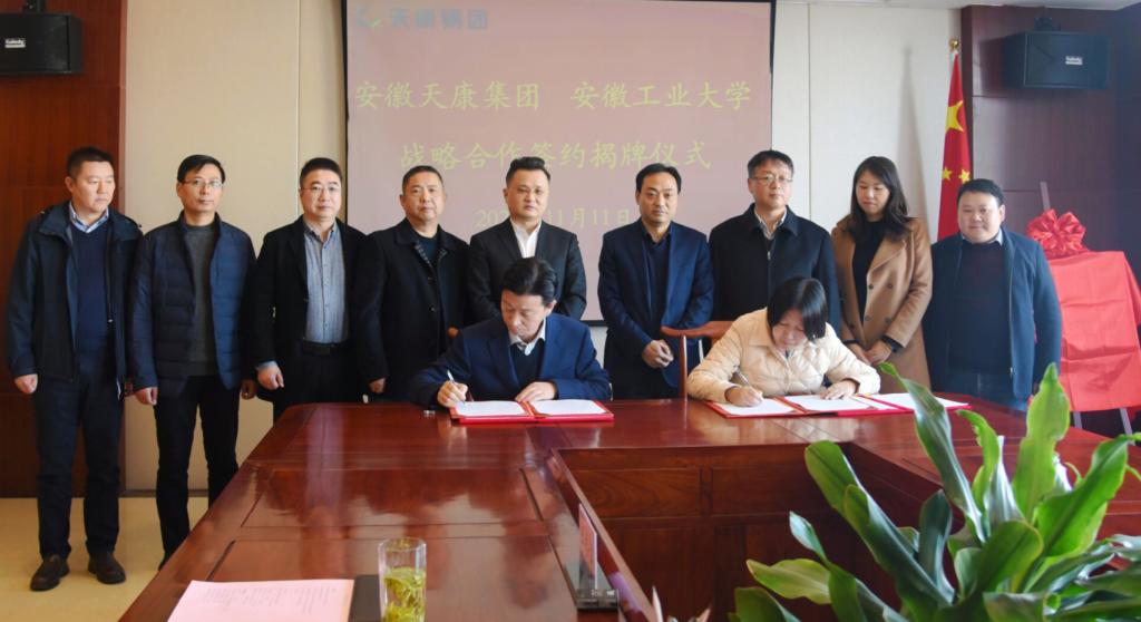 会上,王兵介绍了公司的事业发展和公司的团队建设、专业特色、人才培养以及毕业生就业等情况;毛文章介绍了公司发展历程、产品特色、市场范围和研发需求等情况。双方领导均对院企战略合作前景寄予厚望,通过深入推进校企战略合作,为员工提供更多实习、实训和就业的空间,为专业教师提供产学研平台,共同搭建共谋发展和合作共赢的平台;公司将发挥人才优势和专业特长,在智能化控制系统、传感器技术迭代等方面为安徽天康集团提供持续的技术支撑。随后,王兵与毛文章共同为“产学研合作基地”揭牌,测控系主任李丹与李劲松签订了产学研及实习实训基地协议书。