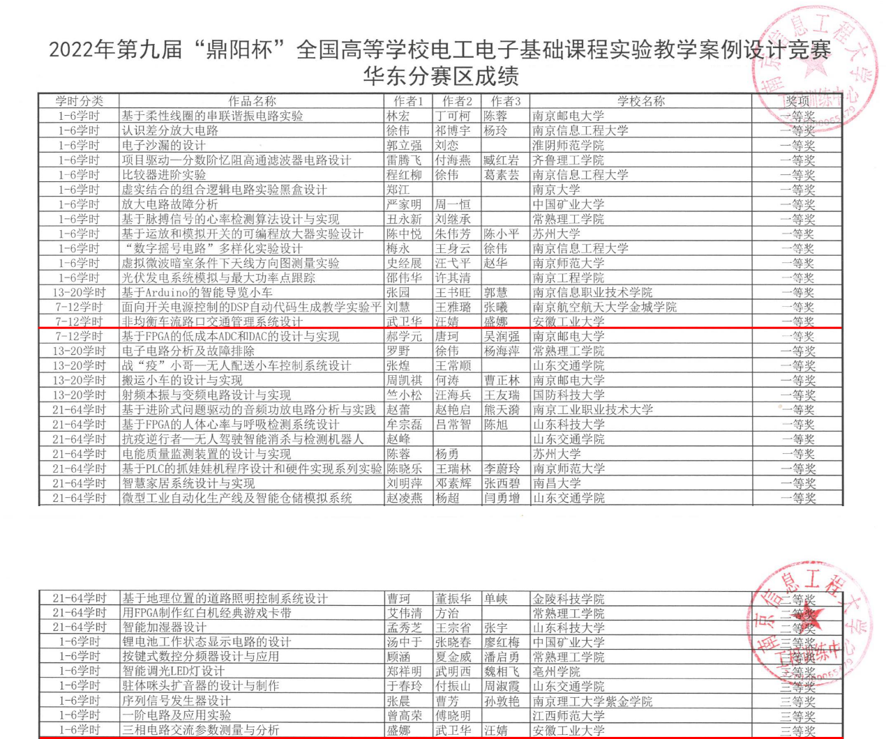 【电气荣光】公司在第九届全国高校电工电子基础课程实验教学案例设计竞赛华东分赛区中喜获佳绩