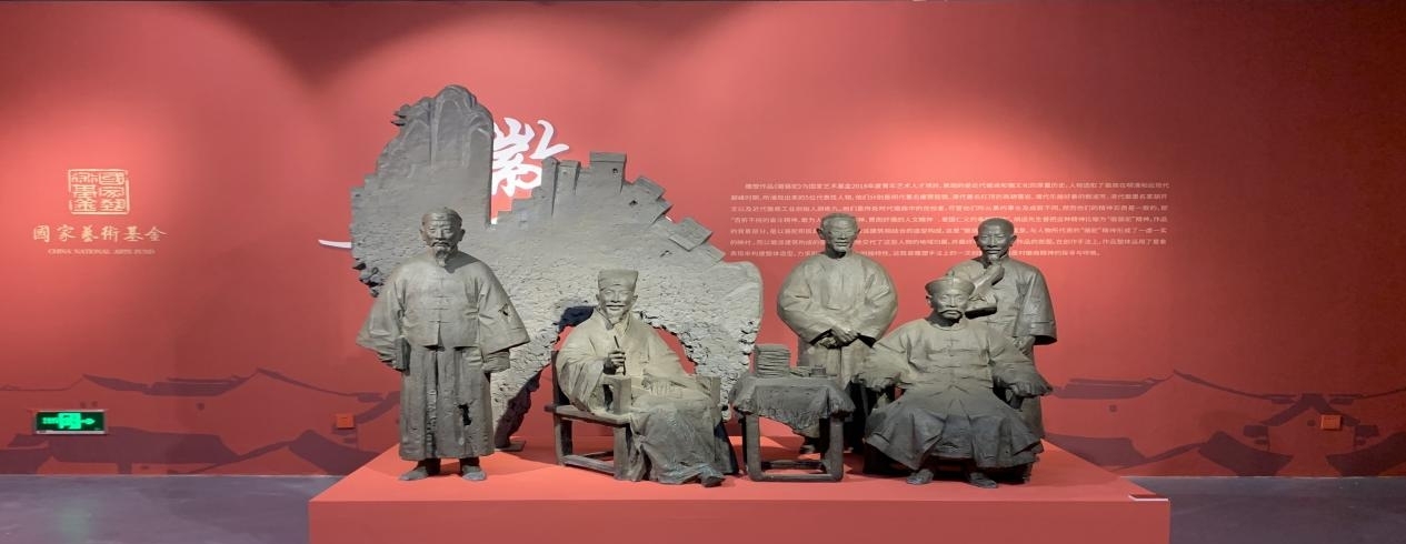 (员工党员们在红色文化雕塑前合影)