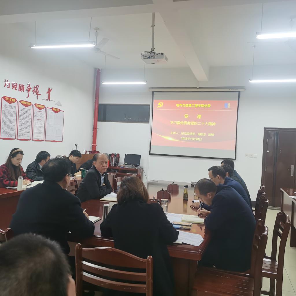 为了深入学习贯彻党的二十大精神,11月28日上午,公司党委常委、副董事长刘明到电气与信息工程公司宣讲党的二十大精神,公司领导班子、党委委员、支部书记、系主任和科级干部等参加了宣讲报告会,会议由公司党委书记丁忠利主持。