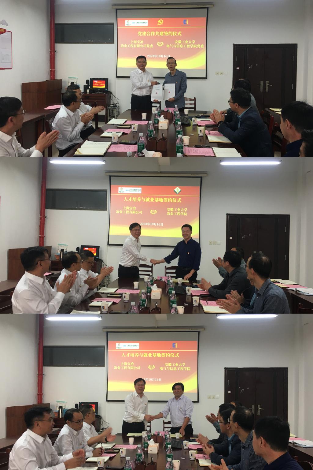 随后,现场举行了基层党组织结对共建签约仪式、人才培养与就业基地签约仪式。参加对接活动的还有上海宝冶冶金工程有限公司总工刘卫健、副总工王少军和杨毅、党群工作部部长龚瑞斌、华东分公司党支部书记曹国信;公司副书记李克明、副经理程木田、冯旭刚教授和方挺教授,以及冶金工程公司徐其言教授。