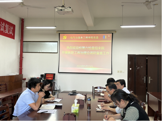 5月23日,公司党委宣传部副部长黄敏、宣传教育科科长张苒一行来院开展教职工政治理论学习情况调研督查,公司党委书记丁忠利、党委副书记李克明、测控党支部副书记刘升和非党员教师代表丁易新参加会议。