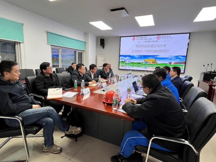 为了进一步深化校企合作,推进有组织科研,服务行业科技进步和学科专业建设。11月18日,公司经理沈浩教授、副书记李克明、科研副经理程木田教授等一行赴南京钢铁集团有限公司推进产学研对接活动,旨在加强双方在冶金技术领域的先进技术应用合作研究。南钢集团总裁助理、制造部部长王润泽、板材事业部总经理周桂成、中厚板卷厂领导等参加对接交流活动,活动由板材事业部设备处处长程鑫祥主持。