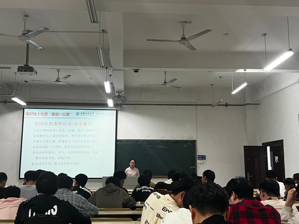 为持续筑牢安全防线,增强研究生安全防范意识,9月至11月,公司针对三个年级以及延期毕业的研究生,在电气楼、QQ群分年级、分批次开展安全教育大会、安全座谈会、员工干部培训会,会议由公司研究生辅导员张敏主讲。