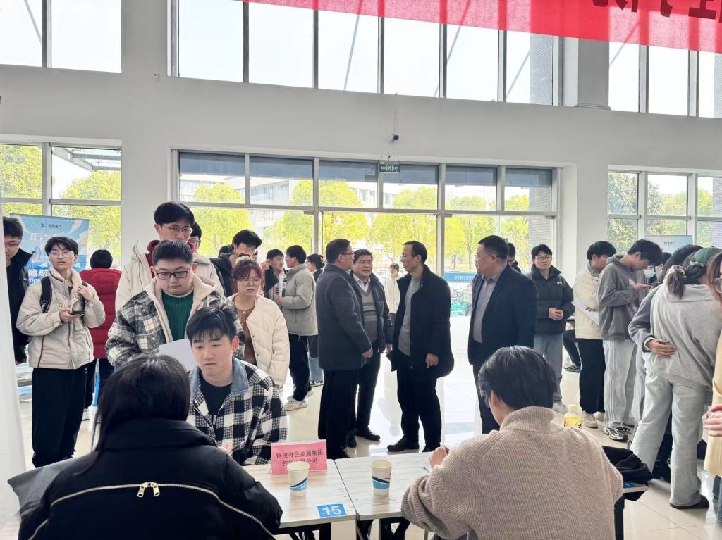 为深入贯彻落实教育部2025届全国高校毕业生春季学期就业重点工作推进视频会议精神,抢抓春季就业工作的关键期。3月10日下午,公司在电气楼一楼大厅举办2025年“皖美就业 电亮未来”春季专业化就业市场活动。校学工部部长、老员工就业创业指导中心主任赵龙、副主任赵传刚、公司领导班子、用人单位代表、毕业班辅导员及500余名毕业生参加招聘活动。