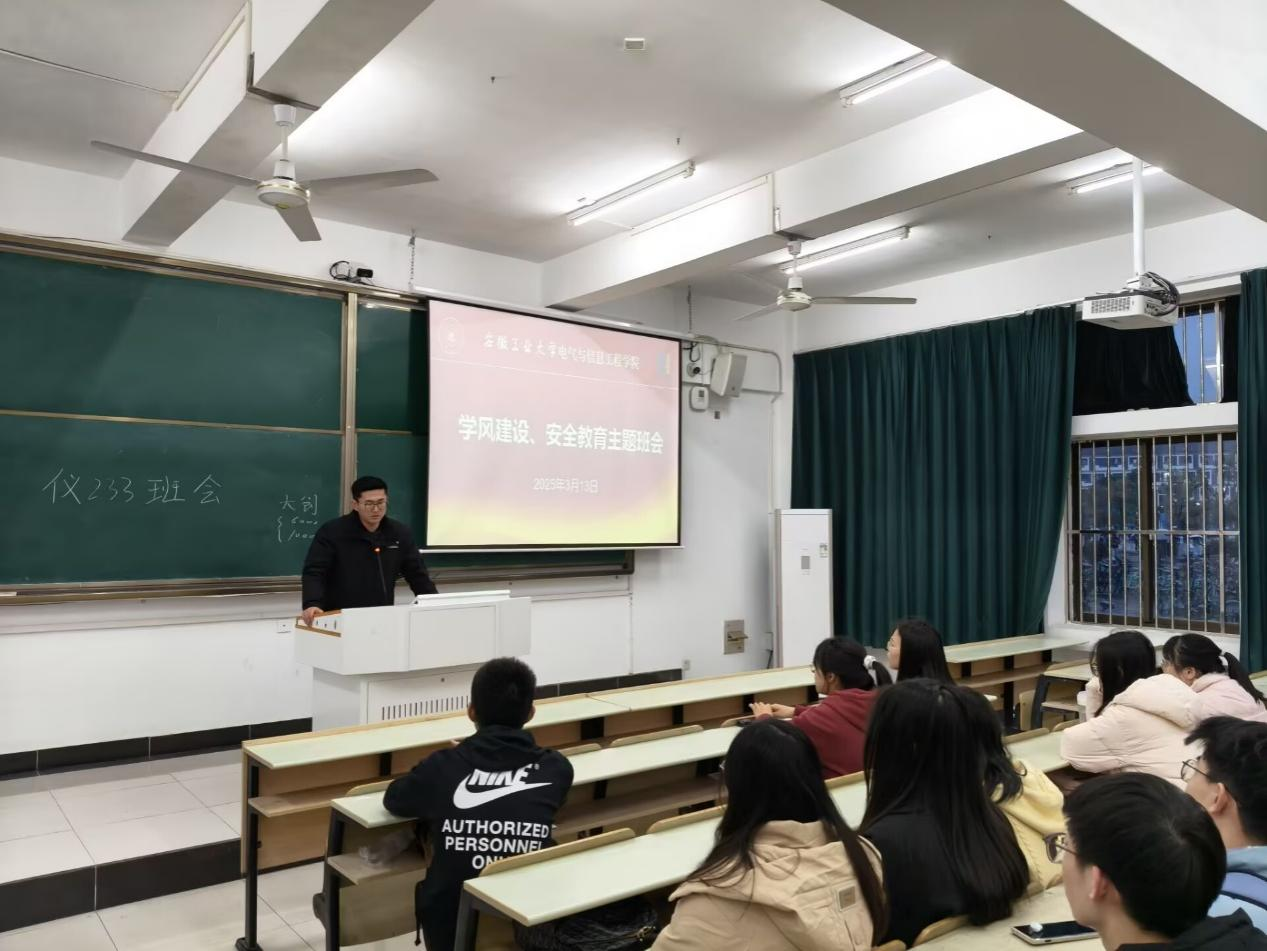 为筑牢校园安全防线,培育优良学风,2025年3月13日,公司在东教北104召开学风建设主题班会,2023级辅导员蒋安东、班主任郭亚晓及全体员工参加此次会议。