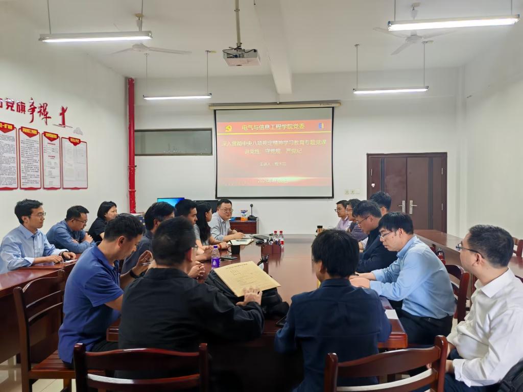 4月28日下午,测控党支部和电工电子党支部联合召开深入贯彻中央八项规定精神学习教育专题学习会,副经理程木田(主持工作)到会指导并讲授专题党课。