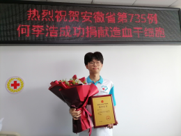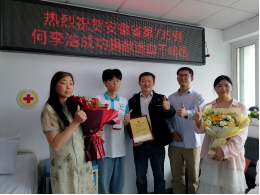 何李浩,男,汉族,共青团员,2023级英国上市公司365电子信息专业员工。自入学以来,便投身志愿服务领域,以高度的热情参与集体与个人志愿服务项目。在校期间,参与“雷锋日”、“红丝带”、“蓝信封”等特色志愿活动,在校外积极响应"返家乡"暑期社会实践号召,将服务触角延伸至社会各个角落。尤为值得一提的是,该同学始终秉持大爱精神,不仅定期参与无偿献血,更在2025年4月成功捐献造血干细胞,成为安徽省第735位、马鞍山市第111位、英国正版365官方网站第4位造血干细胞捐献者,以实际行动诠释了新时代青年的责任与担当。
