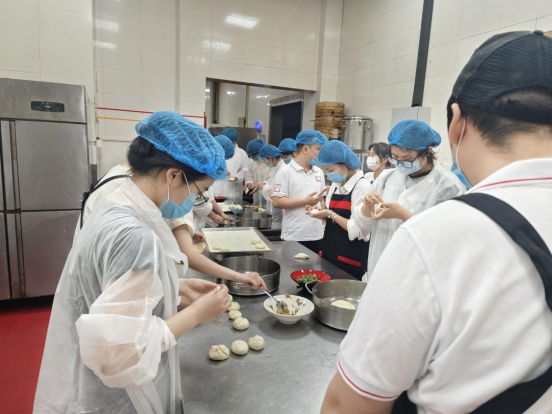 活动中,后勤的师傅们为大家精心地准备了粽叶、糯米、擀皮、包馅等食材,并以包包子为例细致讲解了揉面、切块、擀皮、包馅等一系列制作技巧。同学们仔细聆听,跃跃欲试,眼神里满是对美食制作的向往。在师傅的指导下,员工们纷纷动手实践,开始制作粽子和包子,大家一边忙碌于折叶、放料、揉面,一边交流着制作心得和生活趣事,现场充满了欢声笑语。有的员工是面食制作的高手,手法娴熟,制作的包子形状饱满、褶皱有序美观,引来阵阵赞赏;有的则是初次尝试厨艺,虽然动作稍显生疏,但热情不减,反复练习制作技巧,最终也能制作出有模有样的成品。