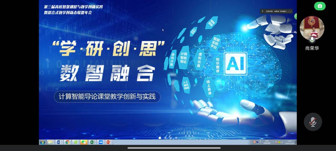 11月20日,西安电子科大特聘教授、课程思政首席专家尚荣教授主讲《“学—研—创—思”数智融合——计算智能导论智慧课程混合式教学创新实践》报告,讲座聚焦《计算智能导论》课程教学中的前沿内容探索不足、个性共性兼顾不足、创新实践训练不足等痛点问题,提出“学—研—创—思”的课程教学改革理念,通过打造智慧课程建设的“六大要素”,以科研反哺教学、运用人工智能打造创新实验平台;运用音频去噪技术的实践案例——将优秀歌曲《我爱你,中国》融入专业教学过程中,达到潜移默化的思政育人效果;借鉴星火大模型和知识图谱赋能智慧课程建设,为课程思政育人创新实践提供了新的教学案例和新的解决思路,让老师们耳目一新,深受启发。11月21日,教育部工程教育专业认证专家、沈阳航空航天大学自动化公司席剑辉教授作了题为“产出导向理念下的专业人才培养实践经验分享”报告,他结合丰富的公司产品经验和优秀的科研成果,详细阐述了“以员工为中心、产出导向、持续改进”理念,聚焦员工、人才培养方案、毕业要求、持续改进、课程体系、团队队伍和支撑条件等关键因素,结合工程教育认证毕业要求的最新标准,回答了课程体系如何有力支撑毕业要求这个内涵观测点的问题,席剑辉围绕沈阳航空航天大学的航空特色和发展历程,结合国家振兴东北老工业基地建设的战略需求,强调了专业发展必须深度融入公司的行业特色和办学积淀,才能在建设中打造自身特色。会上,与会教师与席剑辉进行了深入交流,学习借鉴兄弟高校的成功经验和特色做法。