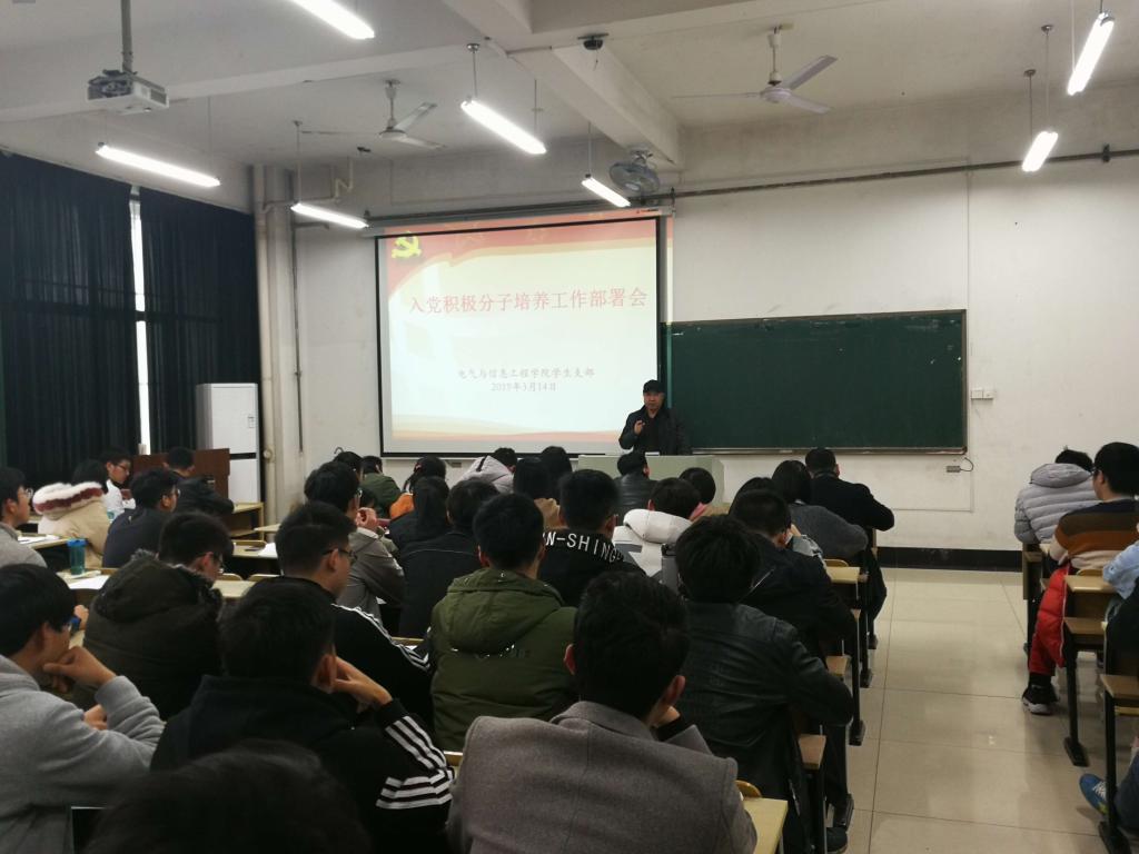 为进一步做好入党积极分子的培养考察工作,突出培养考察工作的过程管理,314日中午,电气公司在电气楼112教室召开入党积极分子培养考察工作部署会。公司党委副书记、副经理郭宏,各员工党支部书记,各年级辅导员以及列入今年发展计划的全体入党积极分子参加了会议。