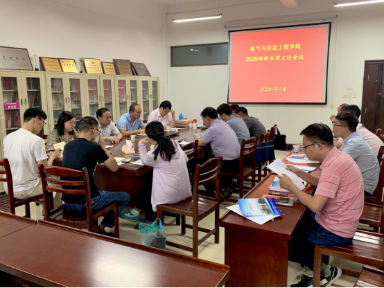 为扎实有效做好新生工作,9月14日下午,电气学院召开2020级新生班主任会议,经理王兵、公司党委副书记、副经理夏玉钦、优秀班主任代表、各班级新生班主任以及新生辅导员参加了会议,会议由夏玉钦主持。