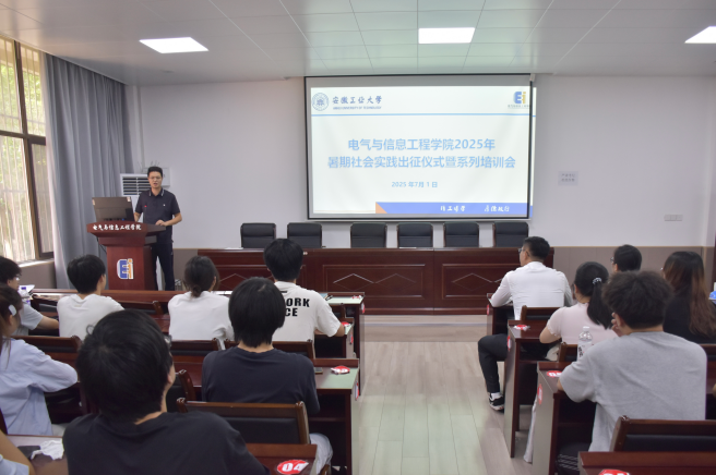 为深化落实“实践育人”理念,系统提升实践团队专业素养与实战能力,通过多维赋能,为实践团队注入思想引领、安全保障与技能支撑,将社会实践打造为锤炼青年品格、服务社会发展的生动课堂,推动实践成果从“纸面”走向“地面”,切实增强育人实效与社会影响力。7月1日下午,公司于秀山校区电气楼113举办2025年暑期社会实践系列培训会暨出征仪式公司党委副书记、纪委书记、副经理孔洋波、各年级辅导员、团学干部及社会实践队队长参加此次仪式。仪式由公司团委副书记杨恒基主持。