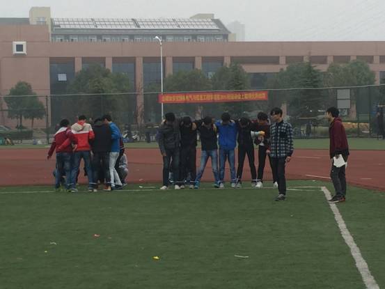 2015年11月14日上午8点半,15级大一新生在心理部部长方军和干事的组织下在公司东区体育场的草坪开展了一次别开生面的活动——户外团体活动心理游戏。