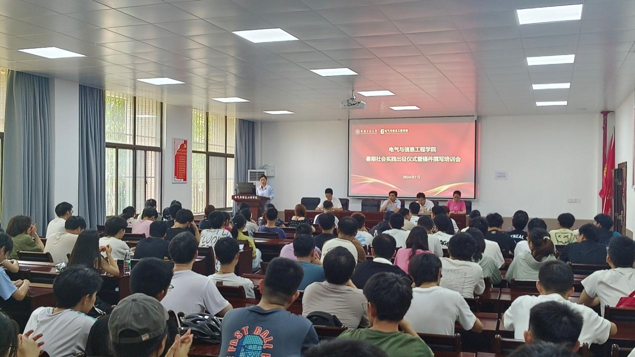 为深入学习贯彻习近平新时代中国特色社会主义思想和党的二十大精神,落实习近平总书记五四青年节对全国广大青年寄语,进一步用好社会大课堂,动员引领青年员工在投身基层建设、服务家乡发展中坚定信念。7月3日下午,在电气楼113会议室举办2024年老员工暑期社会实践出征仪式暨稿件撰写培训会。电气公司党委副书记、纪委书记、副经理李克明、公司副处级辅导员李修正,公司团委副书记杨恒基、汤敏,各社会实践队队长、员工干部参加仪式。仪式由院团委书记甘如美江主持。