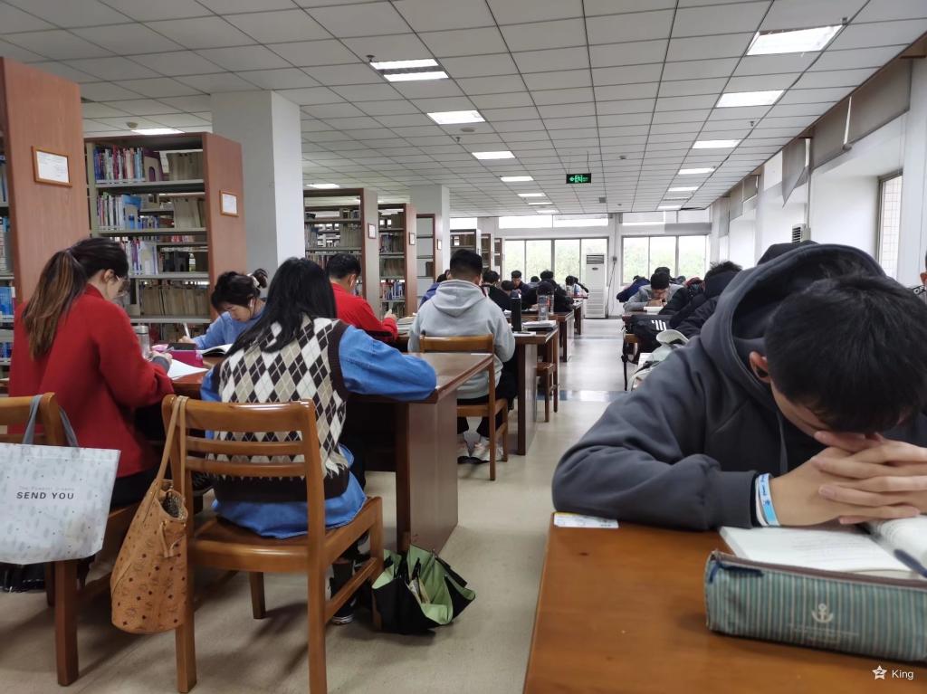 班级同学集体在图书馆自习