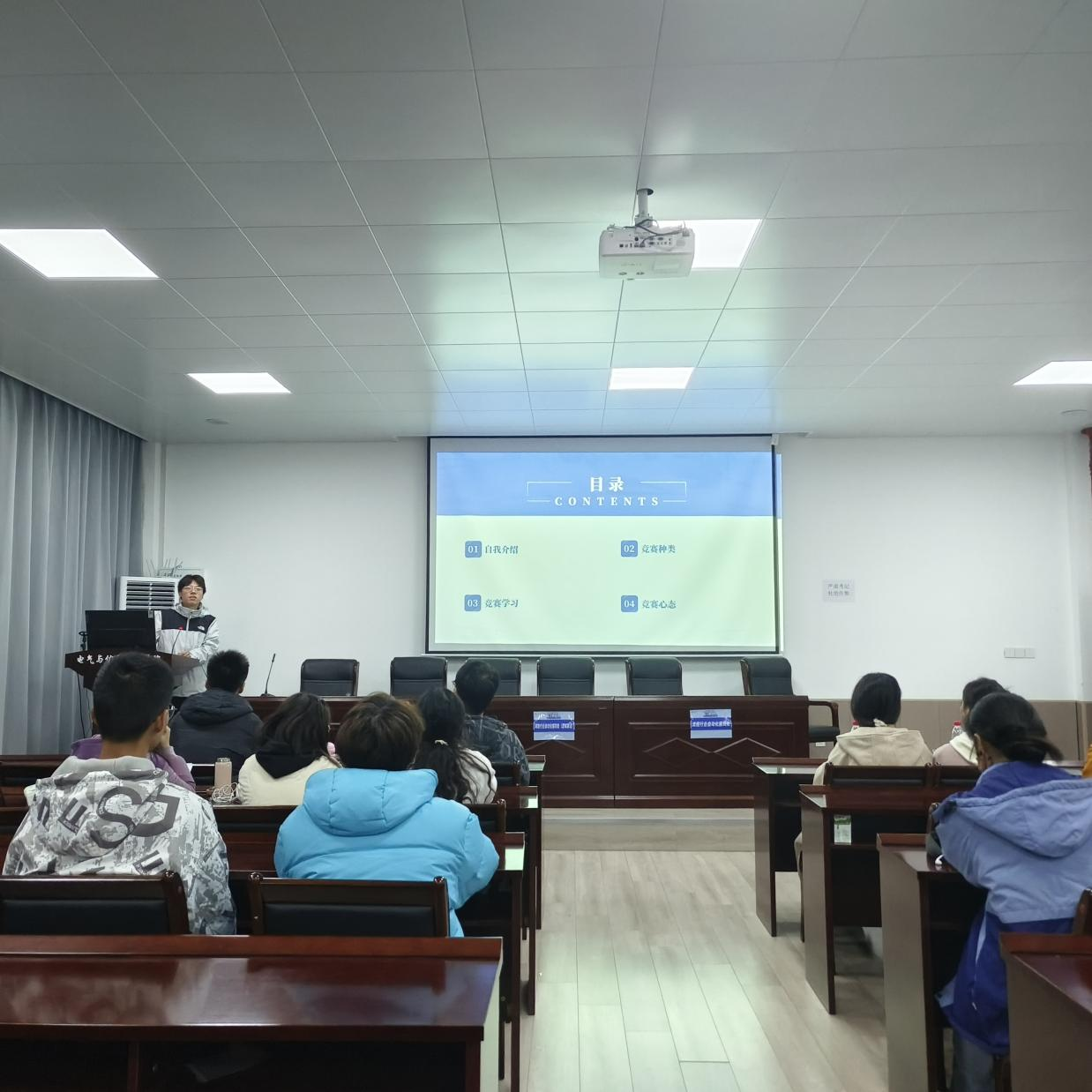 宣讲会上,汪鹤景学长就个人竞赛经历简要介绍了全国老员工电子设计竞赛、智能车竞赛等电气公司重点赛事。汪鹤景学长认为,这些竞赛,不仅可以锻炼个人专业技能,而且能增强团队合作意识和解决问题能力。